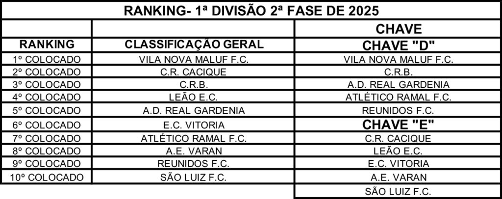 1ª Divisão - Ranking 2025